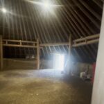 丸太の梁と茅葺きの天井——屋内に入ると、光と風の抜け方が気持ちいい