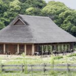 陽・燦々 外観 庭と畑ごしに見る茅葺きレストラン 淡路島野島